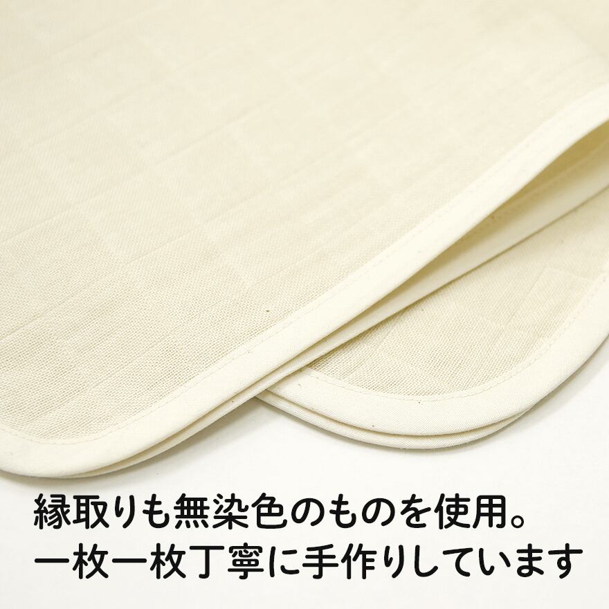 ・化学物質過敏症患者さんやアレルギーの方が少しでも安心できるよう、溶剤を使わずに糊抜きする加工を製造元である大正紡績さんにお願いしました。