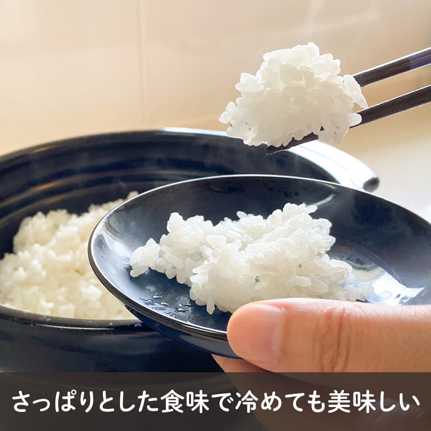 粘りの少ないあっさりとした食感で、冷めても食味が落ちにくいのが特徴。流通している量が少ないため幻のお米とも呼ばれることもあります。